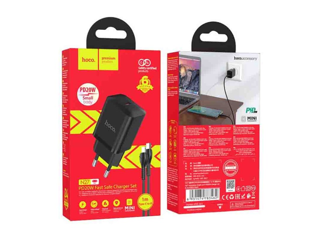 Hoco - N27 - 20W Nabíjací adaptér set 1xUSB-C - kábel USB-C na Lightning - čierna